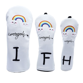 Copricapo del conducente in legno da Golf personalizzato con ricamo con motivo arcobaleno e Logo con Patch di peluche copricapo ibrido da Fairway bianco